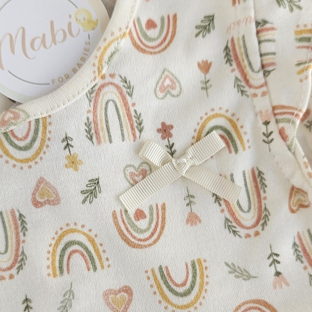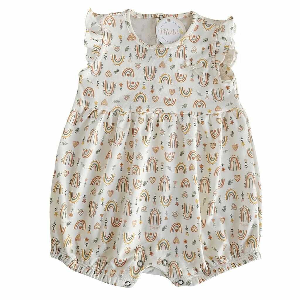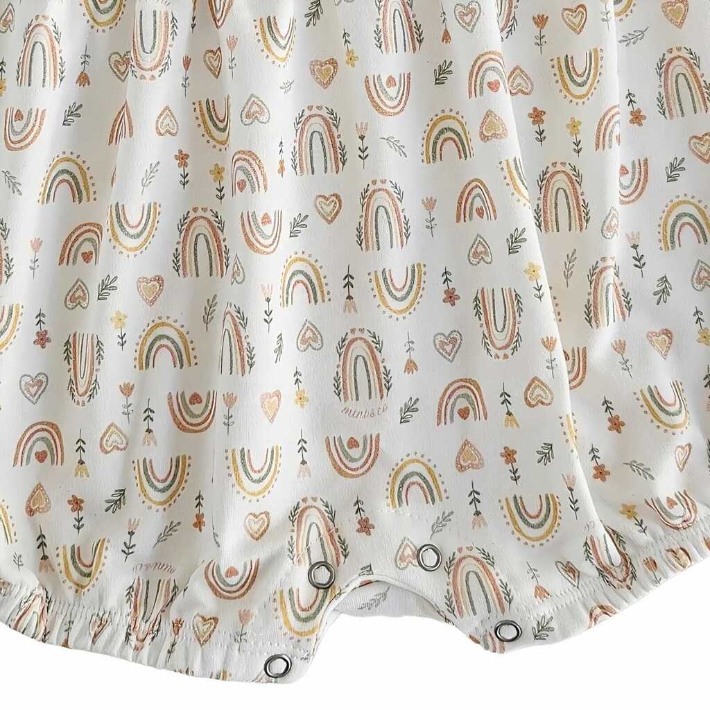 O Macacão Curto Arco-Íris é a peça ideal para momentos cheios de ternura e alegria! Confeccionado em algodão egípcio de alta qualidade, proporciona maciez, conforto e leveza nos dias ensolarados. Com uma estampa encantadora de arco-íris, corações e florzinhas em tons suaves, este modelo irradia delicadeza e charme. Detalhes como o babadinho nas mangas e o lacinho aplicado no peito adicionam um toque especial. A praticidade fica por conta dos botões de pressão nas costas e entre as pernas, que garantem facilidade ao vestir e trocar as bebês.