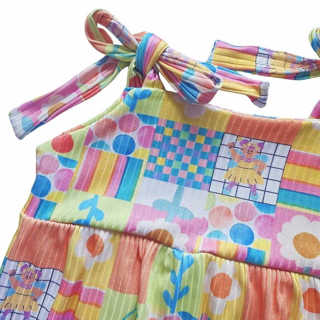 O Romper de Alcinhas Ajustáveis é fresquinho e perfeito para os dias quentes. Feito em tecido canelado que não amassa, oferece conforto e praticidade. As alcinhas ajustáveis com laços garantem um ajuste fofo e delicado, enquanto os botões entre as pernas facilitam as trocas. Com estampas alegres e coloridas, é uma peça cheia de charme para deixar as pequenas ainda mais estilosas!